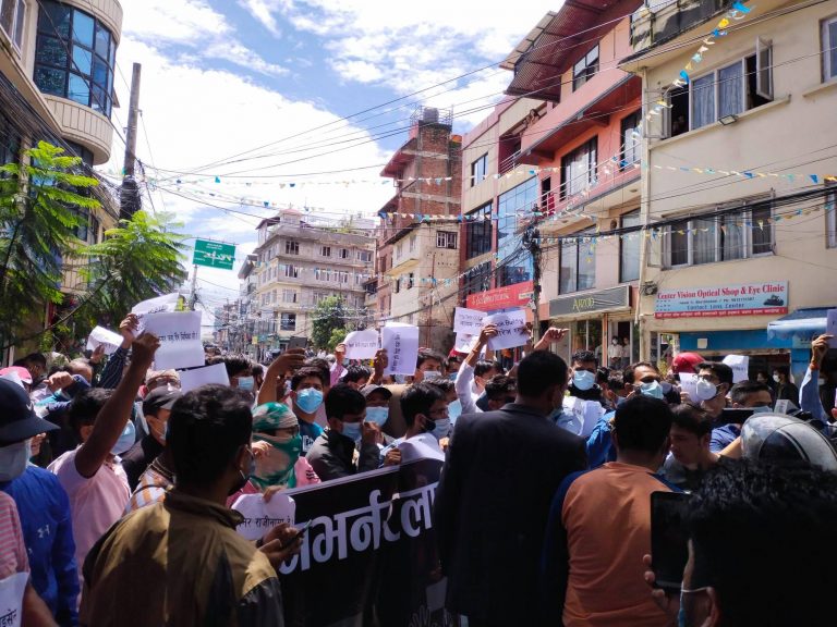 गभर्नर अधिकारीको राजीनामा माग गर्दै राष्ट्र बैंक घेराउ