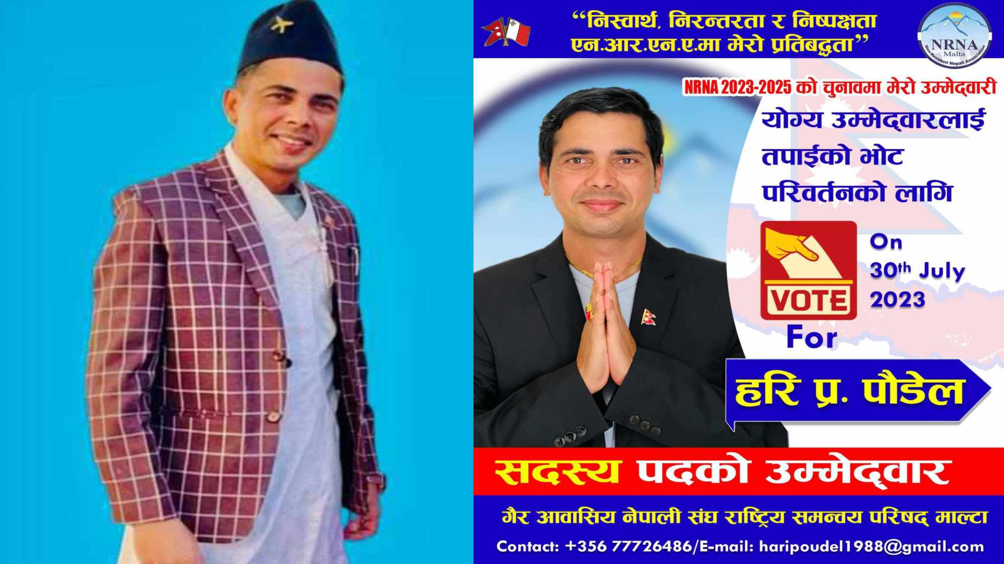 नेपाली हकहितको लागि अग्रसर पौडेलले दिए NRNA माल्टामा सदस्य पदमा उम्मेद्बारी