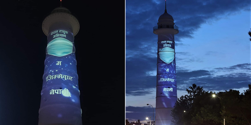 धरहरालाई मास्क लगाइदिएर सुरु भयो मास्क सप्ताह अभियान