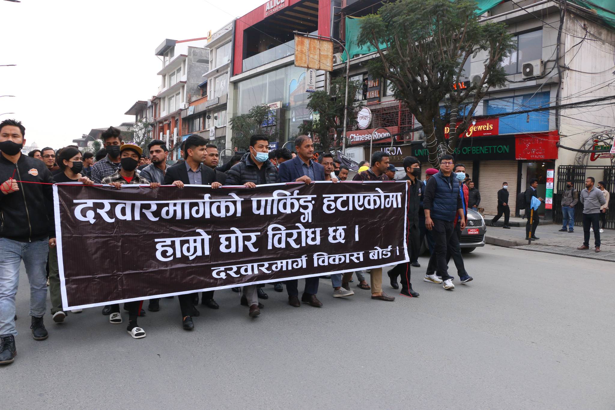 पार्किङ हटाएको विरोधमा दरबारमार्गका व्यवसायी आन्दोलित
