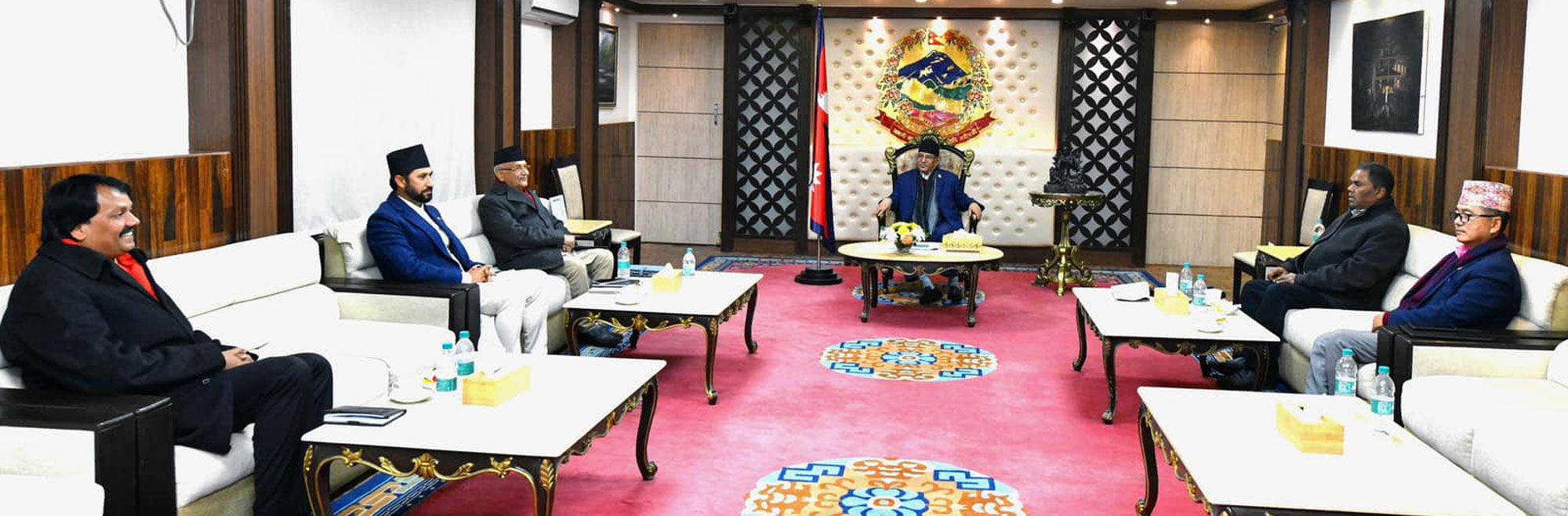 राष्ट्रपतिका उम्मेदवार रामचन्द्र पौडेल मत माग्दै राप्रपा कार्यालयमा