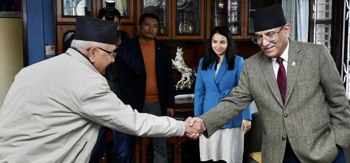 प्रधानमन्त्री प्रचण्डलाई भेट्न ओली बालुवाटारमा