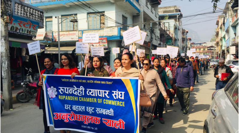 चर्को घरभाडा र बैंक व्याज विरुद्ध बुटवलका व्यवसायीहरु सडकमा