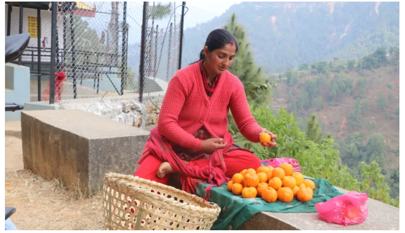 गुल्मीकी पार्वताले डोकोमा सुन्तला बेचेर दुई लाख आम्दानी गदैं