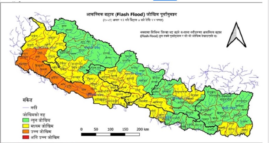 आज र भोलि कहाँ–कहाँ छ बाढीको जोखिम ?
