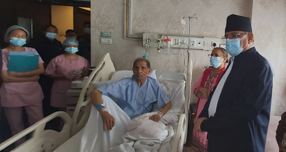 मोहन वैद्यको स्वास्थ्यावस्था बुझ्न नर्भिक पुगे प्रचण्ड