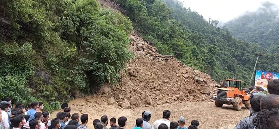 १० घण्टादेखि पृथ्वी राजमार्ग बन्द, नाग्दे खोला नजिकै पहिरो